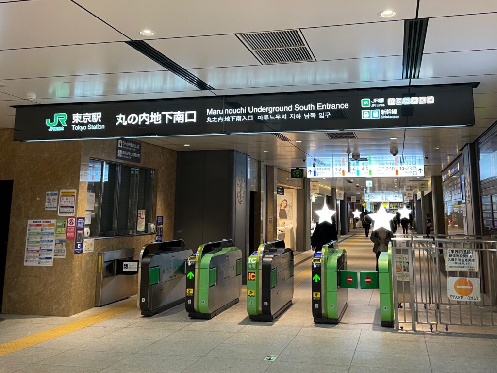 丸の内南口は、丸の内側の地上(1F)に位置する改札です。