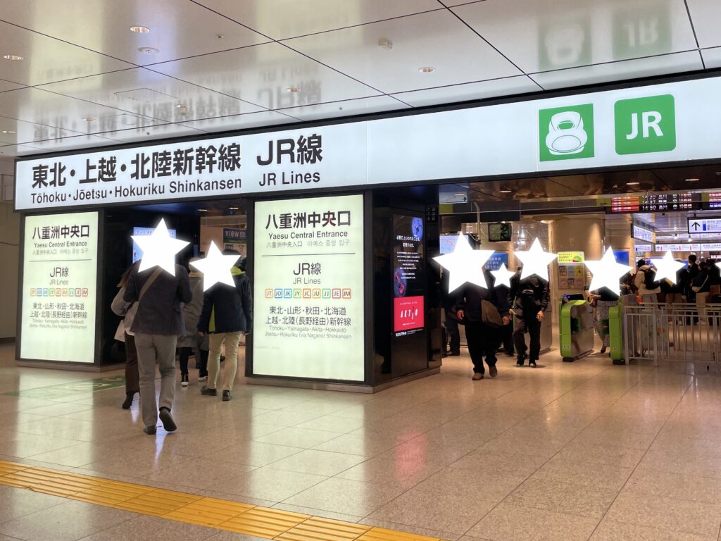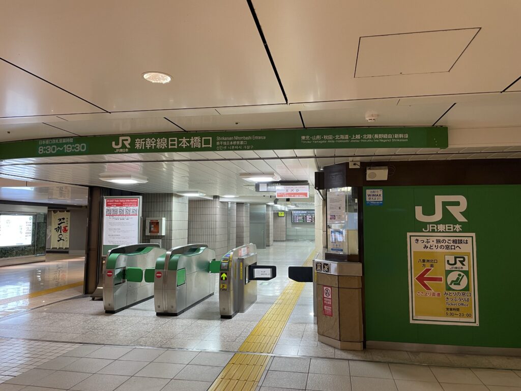 (東北・上越・北陸新幹線の)日本橋口は、日本橋側の地上(1F)に位置する改札です。