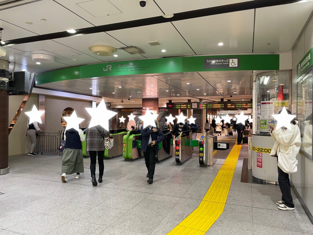 小さめの改札なので、人を見失うことがなく、待ち合わせに向いています。